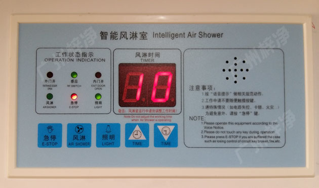 第一步:进入风淋室找到风淋室控制器面板(看下图);