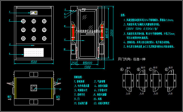自动控制:风淋室应配备自动控制系统,实现风淋过程的自动启动和停止。